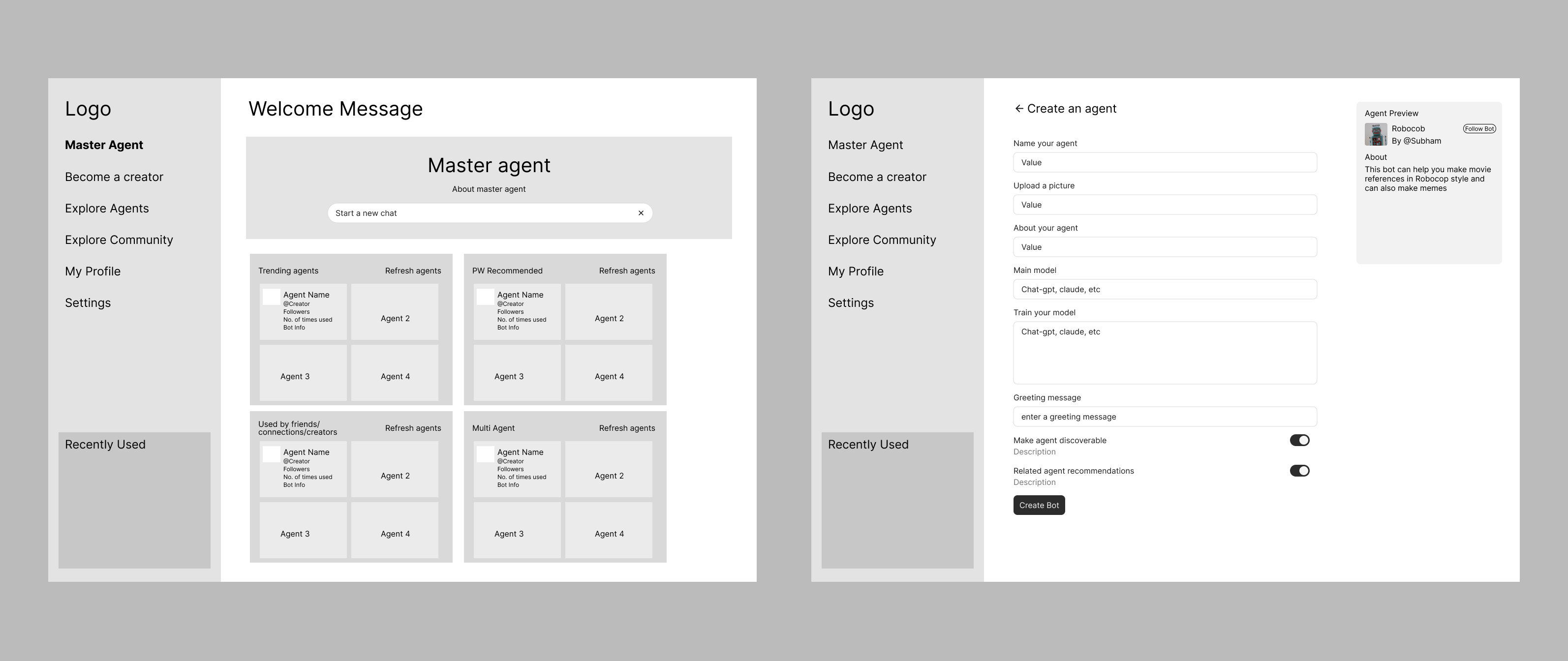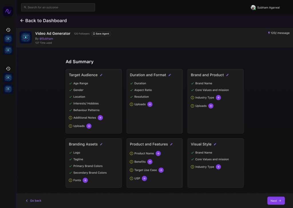 As the contractual Product Designer for Nagent.ai, I led the design of a versatile platform that allows users to create custom AI agents or choose from pre-designed templates to generate a wide range of content.