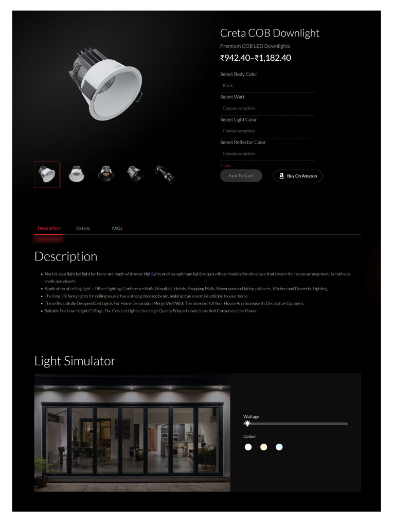 Interactive tool: A dynamic light simulator to preview brightness and color variations.